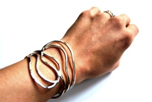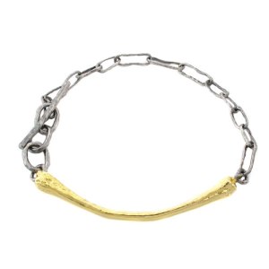 Designern Björg blandar ofta oxiderat silver med guldpläterat silver i en rå & spännande design.