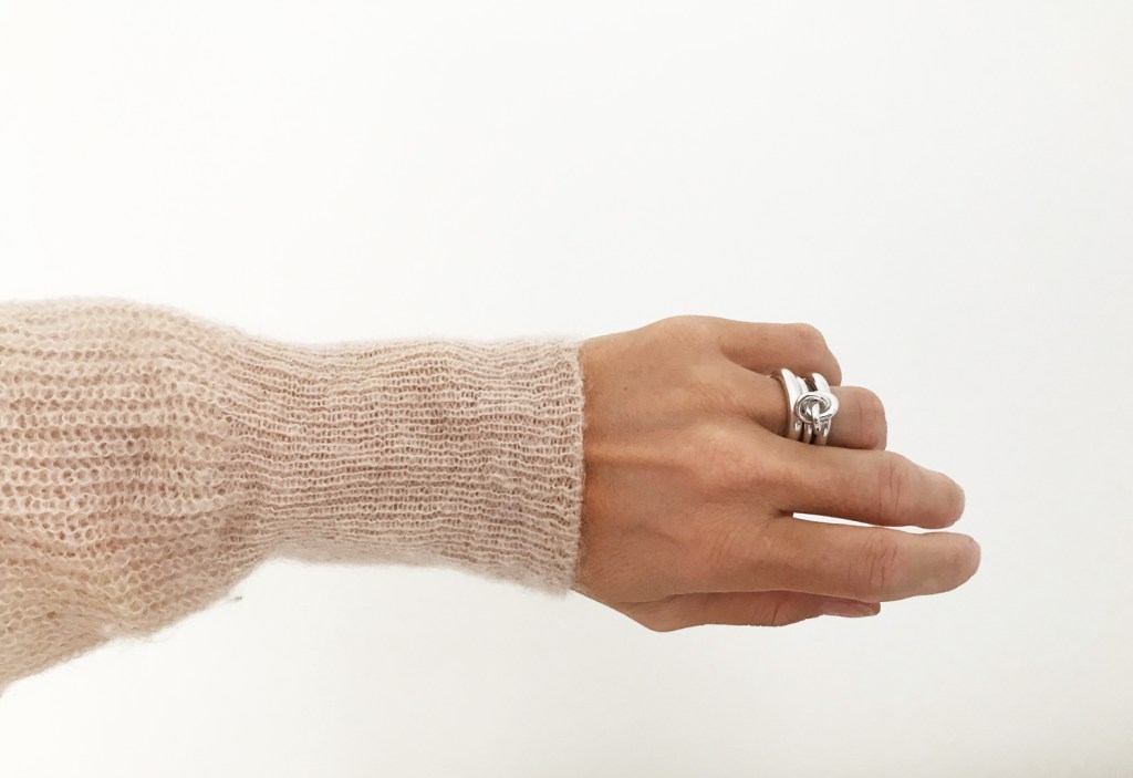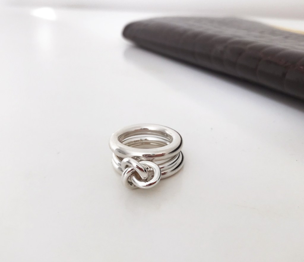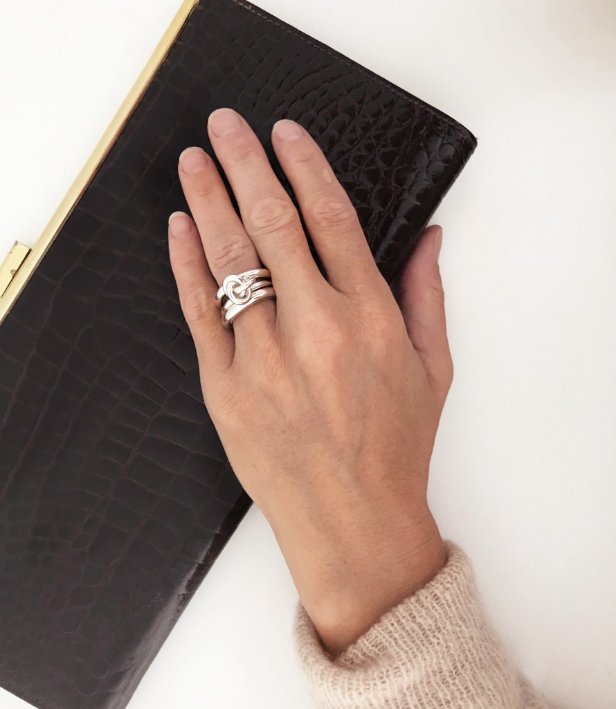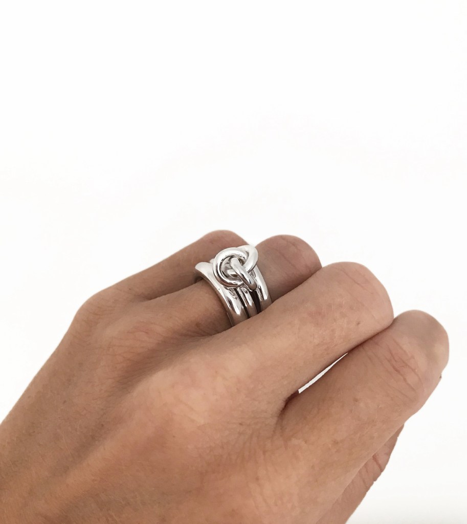 Ringen med silverknut är fin att bära för sig själv och de två tjockare ringarna är snygga att bära tillsammans utan ring emellan.