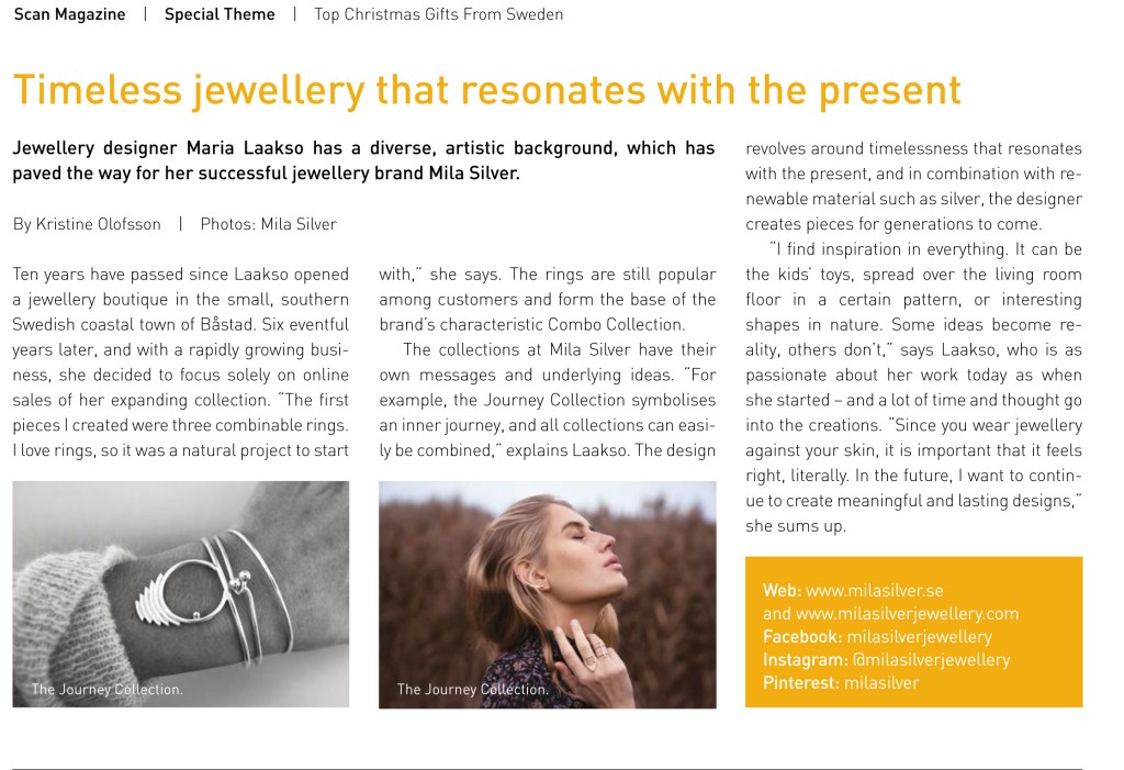 SAMARBETEN, Uncategorized Mila Silver i Scan Magazine! 16 november, 20199 november, 2020av Mila Silver Mila Silver i Scan Magazine! Mila Moon Step Cuff är en av Scan Magazines Top Christmas gifts from Sweden! Dela detta: Dela på LinkedIn (Öppnas i ett nytt fönster) LinkedIn Dela på Facebook (Öppnas i ett nytt fönster) Facebook Dela på Pinterest (Öppnas i ett nytt fönster) Pinterest E-posta en länk till en vän (Öppnas i ett nytt fönster) E-post Mer Dela på X (Öppnas i ett nytt fönster) X Dela på Tumblr (Öppnas i ett nytt fönster) Tumblr Gilla Laddar in …