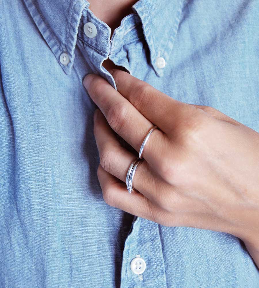 Att kombinera flera ringar till en personlig och unik kombination är ett roligt sätt att bära ringar!