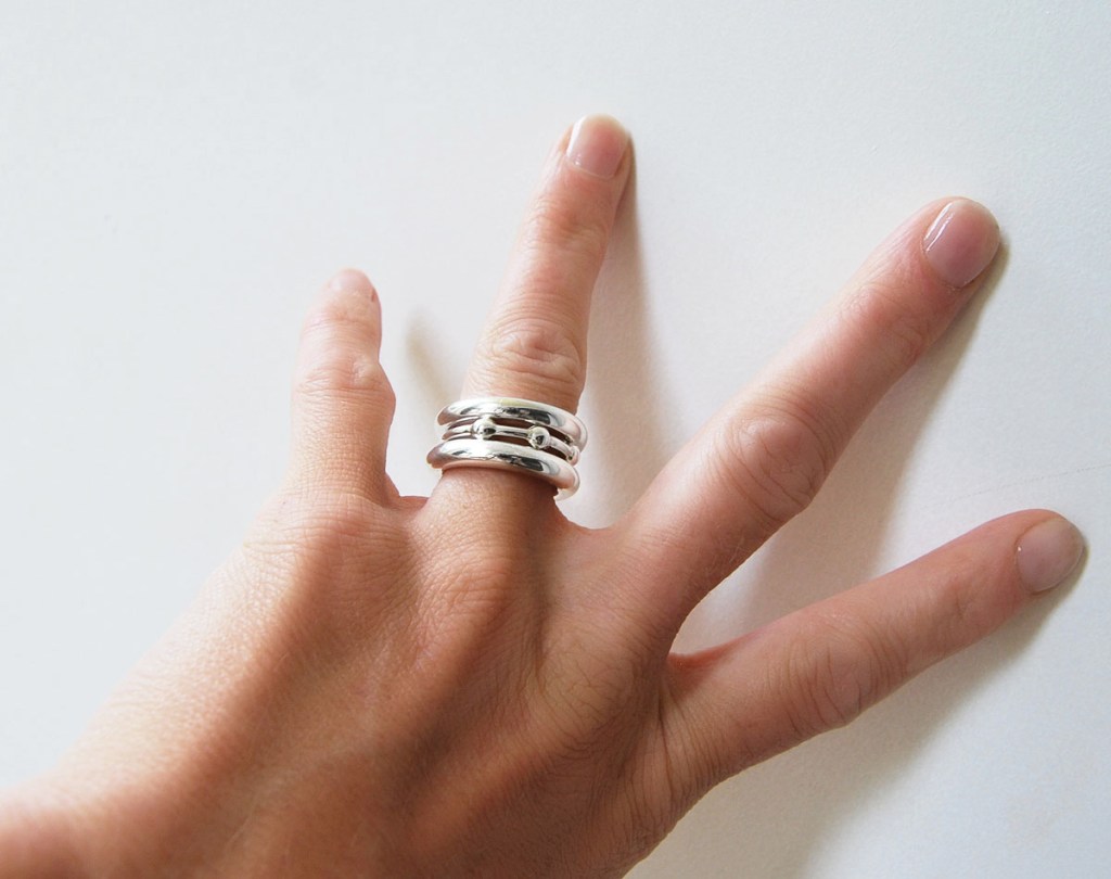 Eftersom Jupiter ring har infällda kulor har ringen höjd vilket gör att den sticker ut och synd i en kombination. Ringarna i båda dessa kombinationer kan bäras var för sig och i nya kombinationer.