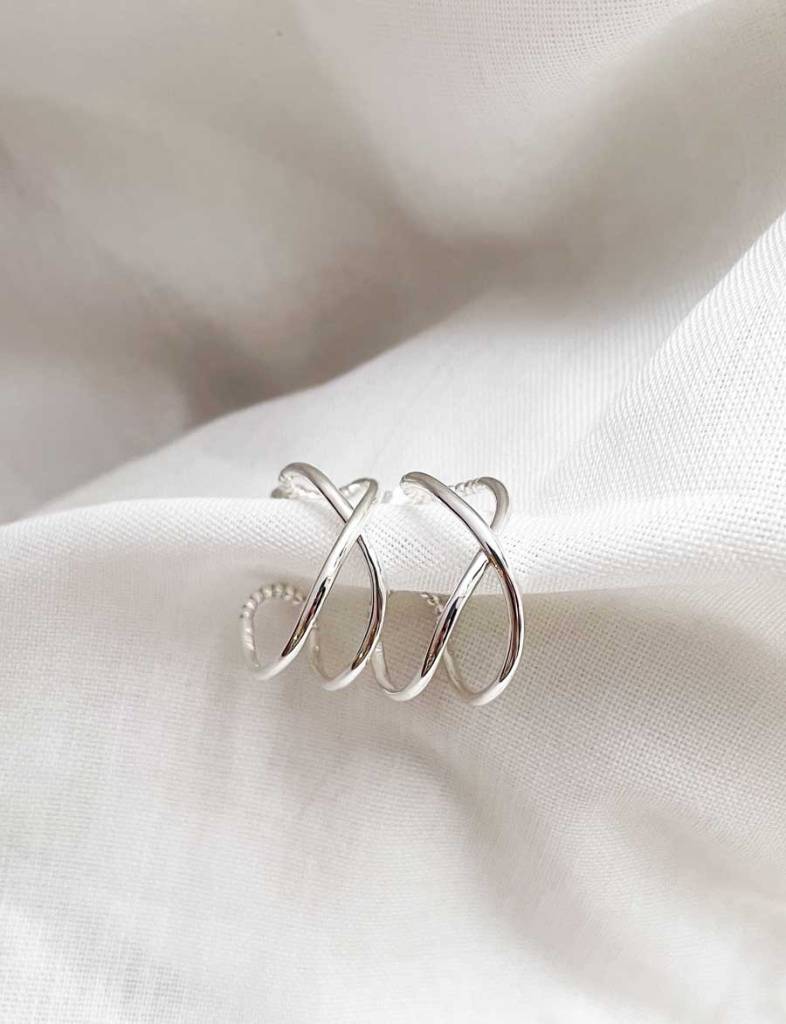 A Cross Hoops har omlottlagda skenor som avslutas i en båga som är dekorerad med silverkulor.