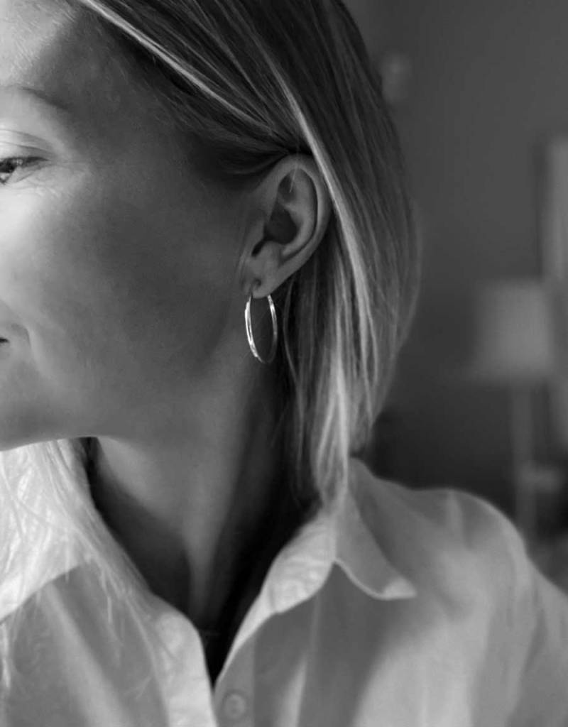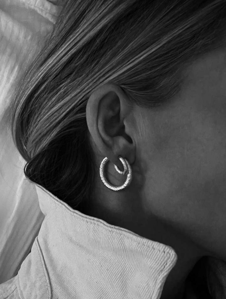 Hoopsen är tillverkade av massivt silver. Den hamrade ytan glittrar snyggt och är tålig mot repor och märken.