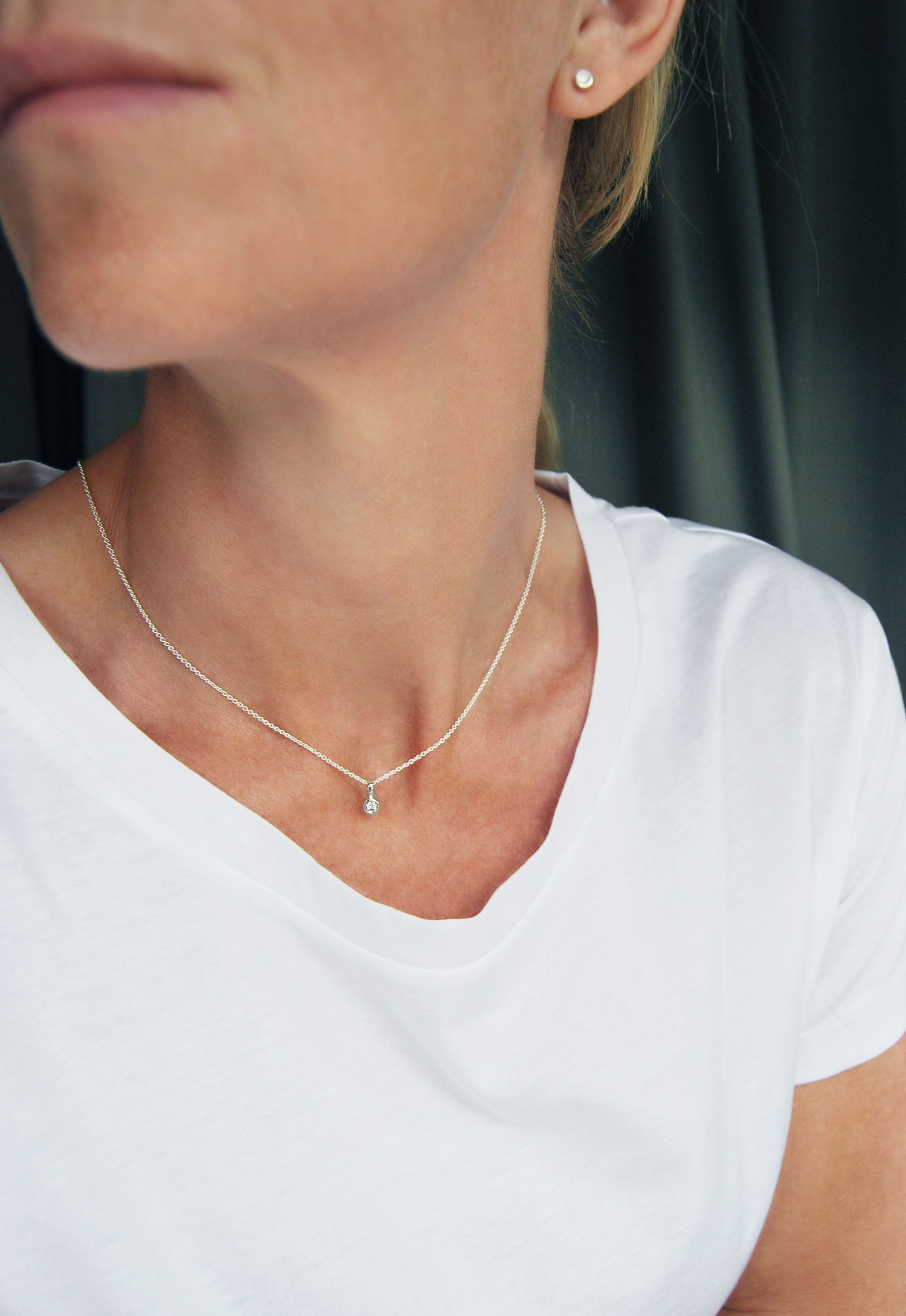 Minou diamanthalsband har ett hängsmycke med en 0.10 ct diamant som du kan ta av från kedjan. Beställ i valfri längd.