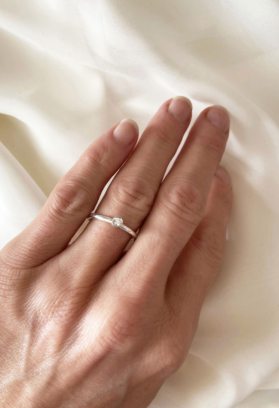 Bär Minou Diamantring som den är för en minimalistisk kollektion eller mixa med Mila Silvers smala silverringar.