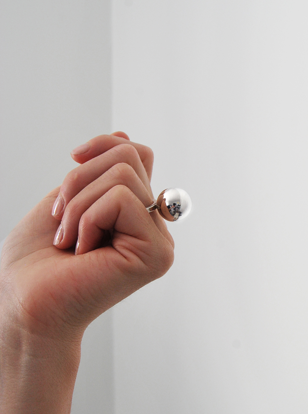 Happy ring är silverringen som poppar! Ringen har en stor silverkula på en ring med raka kanter vilket skapar snygga kontraster i former och dimensioner.