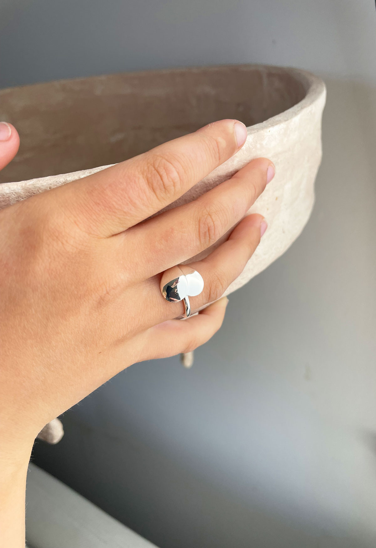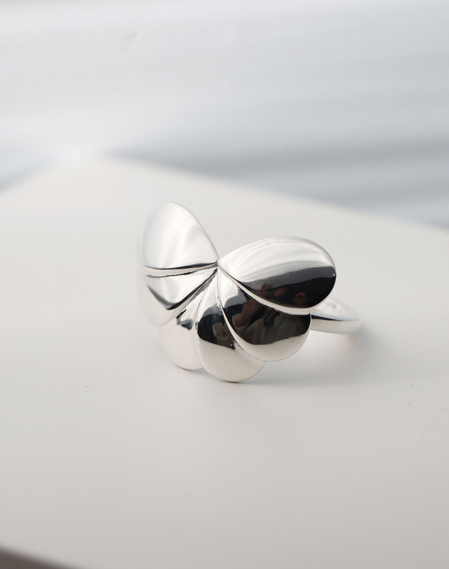 Fly With Me Statement ring är en stor vacker silverring med vingar monterade som en solfjäder.