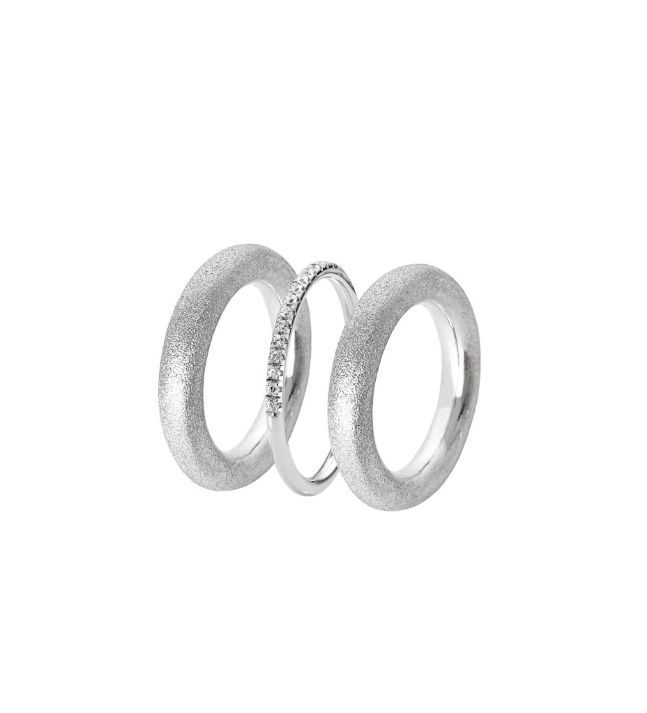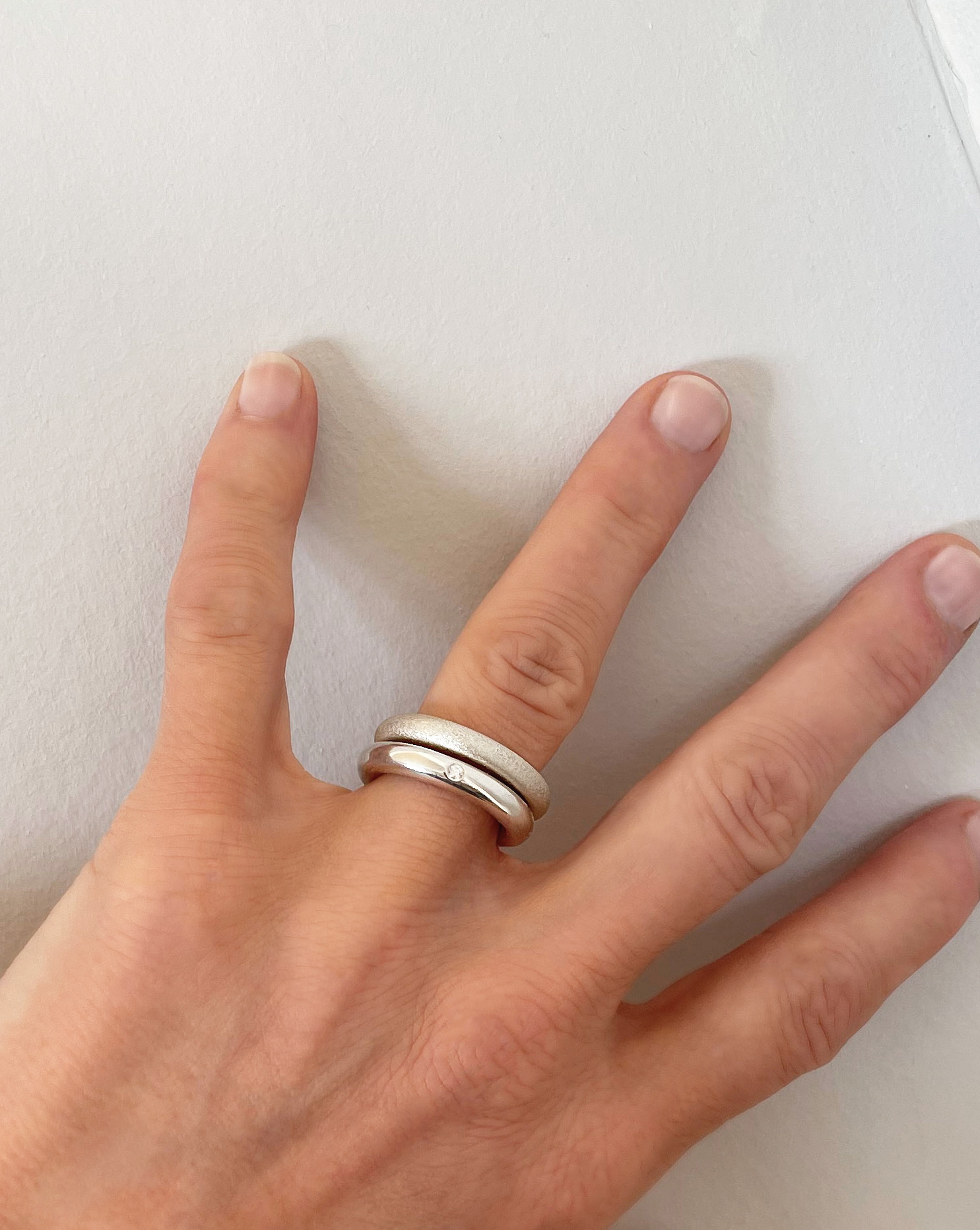 Variera genom att bära diamantringen själv och de matta ringarna tillsammans.