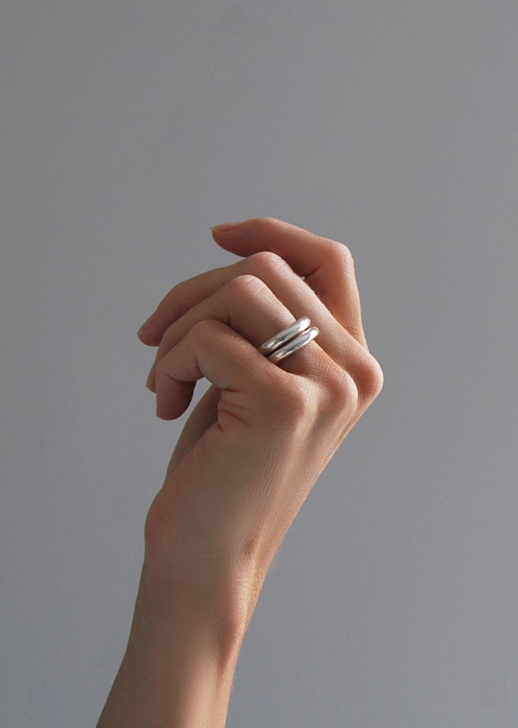 Tredje bilden visar en fin vardags-combo med två blanka silverringar och Amalia ring.