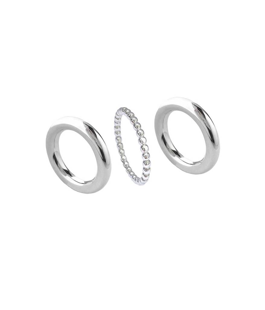 Sista bilden: En klassisk ring stack med 3 in One ring. Variera genom att bära 3 in One ring själv och de släta silverringarna tillsammans.