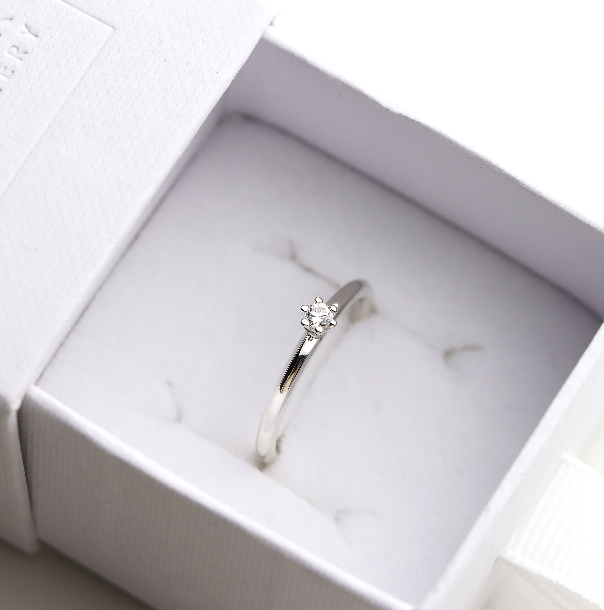 Möt Mila Silvers nyhet – Julie diamantring. En vacker silverring med en 0.10 ct diamant i krona.