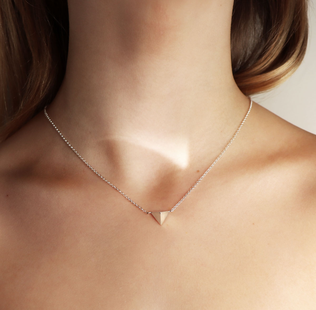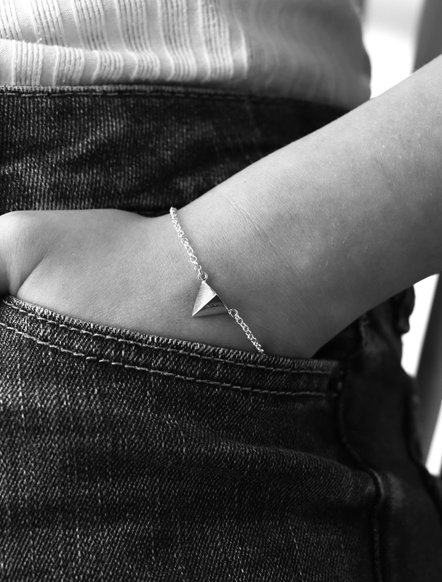 Minimalistiska Yes I Am halsband och armband har en enkel, vacker pyramidform i silverkedja.