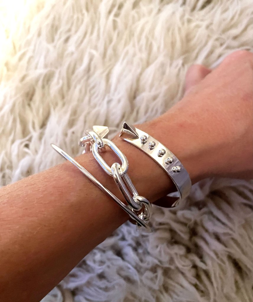 Bär breda armband lager på lager eller mixa och matcha stela silverarmband med kedjearmband. Trenden känns bohemisk men ser lyxig ut om du väljer äkta silverarmband till din bracelet stack. På bilden har vi kombinerat ett smalt silver bangle med ett chunky kedjearmband och cuff armbandet Yes I Am. En härlig mix av mjuka, följsamma former, rena linjer och en gnutta punk!